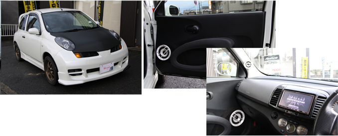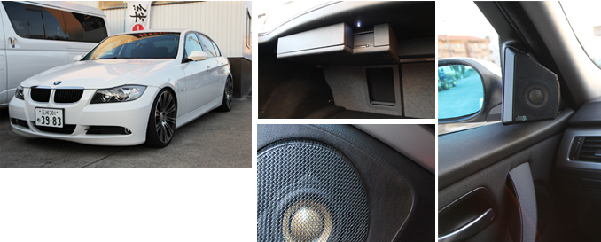 トゥイーター、ミッドレンジ供に加工して取付けてあります。トゥイーターの取付け位置、取付け角度をしっかりする事によってダッシュボード上に広がるステレオイメージが体感できます。またドアの加工をしてミッドレンジを取付ける事によって、内蔵アンプでも豊な低音の再生を可能としました。